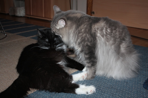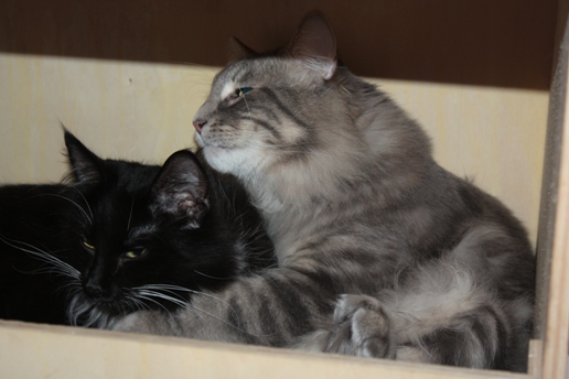Diese Erlebnisse bestätigen mich immer wieder darin, dass die Haltung sowohl von potenten und auch kastrierten Tieren mit einander überhaupt kein Problem ist, sofern sie die Möglichkeiten haben ihre Position in der Gruppe erst einmal zu finden und jeder auch die Gelegenheit hat, sich zurück zu ziehen wenn ihm danach ist. Meine kleine Katzentruppe ist eine wirkliche Familie, in der jeder für den anderen einsteht. Ein Märchen ist Wirklichkeit!