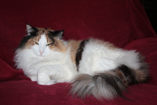 Lissy hat eine sehr schöne Farbverteilung und einen herrlich langen Schwanz. Sie ist eine sehr große und kräftige Katze und hat diese Dinge auch an ihre Kitten weitergeben. Lissy trägt Verdünnung und ist die Mutter unseres F- und H-Wurfes.