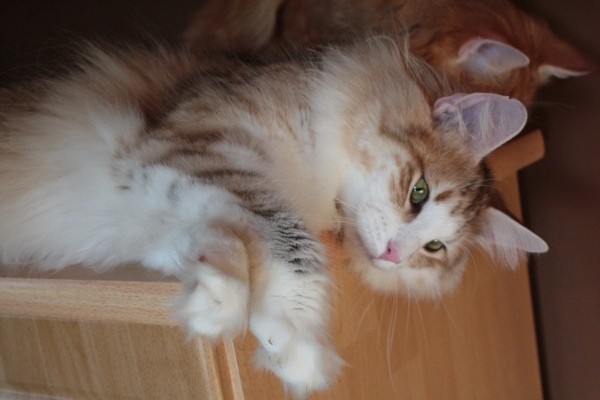 Iago hat mich lange warten lassen. Er ist zu einem stattlichen Katermann heran gewachsen und ich bin so stolz auf meinen Brummbär. Aber erst mit eineinhalb Jahren ist dann endlich sein erster Wurf geboren worden.