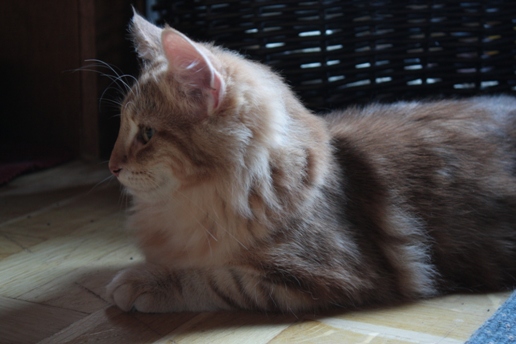Lange habe ich nach einer typvollen Maus in amber-tabby-cl. gesucht. Und endlich bin ich in Belgien fündig geworden. Die Kleine war erst drei Wochen alt, aber ich war mir sicher... sie ist es. Endlich durfte ich sie dann auch nach der ersten Impfung besuchen fahren. Und es war gar keine Frage mehr ob sie denn nun zu mir kommen würde. Sie war genau so, wie ich sie mir vorgestellt hatte und sie hat sich auch gleich in mein Herz geschlichen. Ich bin auf ihre weitere Entwicklung sehr gespannt und ich freue mich irre, dass diese kleine Maus nun bei mir leben darf. Liebe Irene, lieber Sven, ich danke Euch, dass ihr mir die Kleine anvertraut habt. Ich werde mich ein Leben lang gut um Nessaja kümmern.