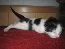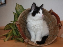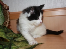 Falco ist ein schwarz weiß Katerchen mit viel weiß....