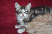 Irish ist ein kleiner Bub in der Farbe black-tabby-cl. / white. Auf der Nase ist er dunkel und hat aber eine wie ich finde sehr schöne Weißverteilung.