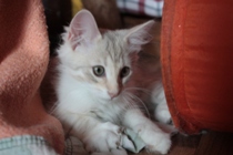 Virgil ist ein kleines Katerchen in der Farbe light-amber-silver-tabby-sp./white.